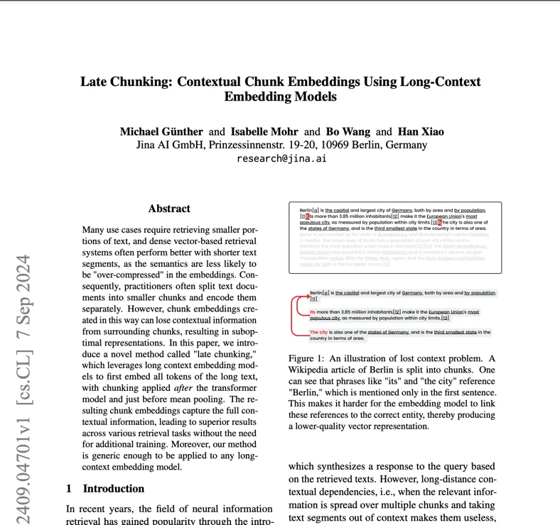 Late Chunking: Contextual Chunk Embeddings Using Long-Context Embedding Models