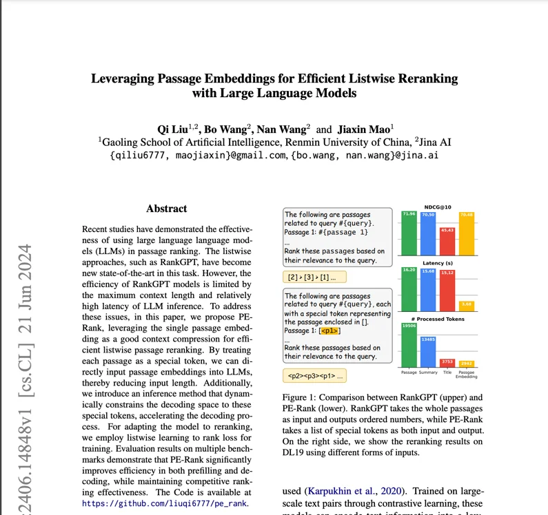 Leveraging Passage Embeddings for Efficient Listwise Reranking with Large Language Models